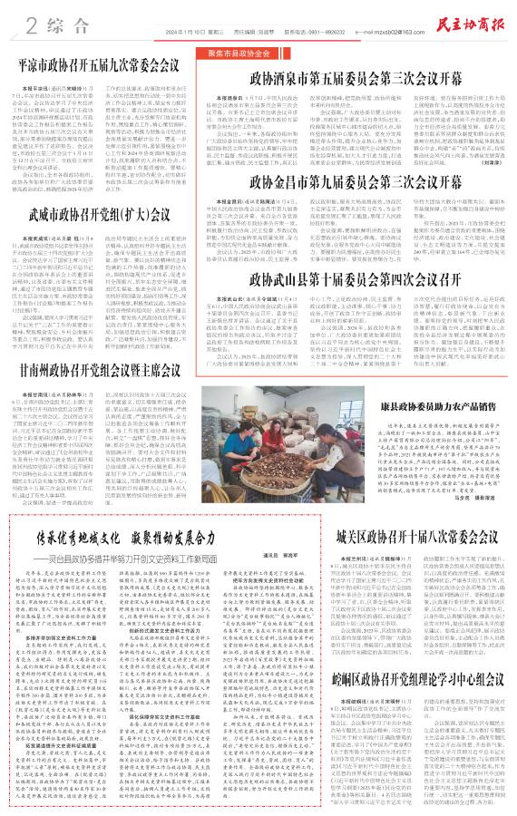 平凉市政协召开五届九次常委会会议