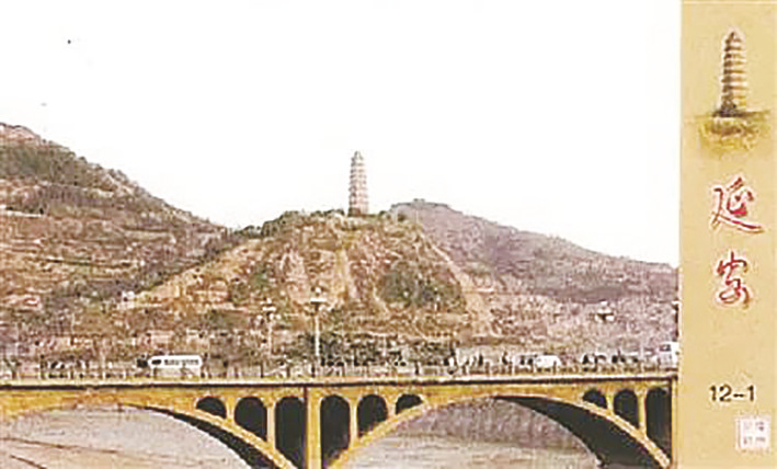 广州火柴厂有一款“延安宝塔山”的“火花”,“火花”以延安宝塔山为背景,前景是延河大桥,桥上行驶着公共汽车,还有行人,桥下是延河水,桥后是宝塔山,宝塔山上是巍峨的宝塔。
