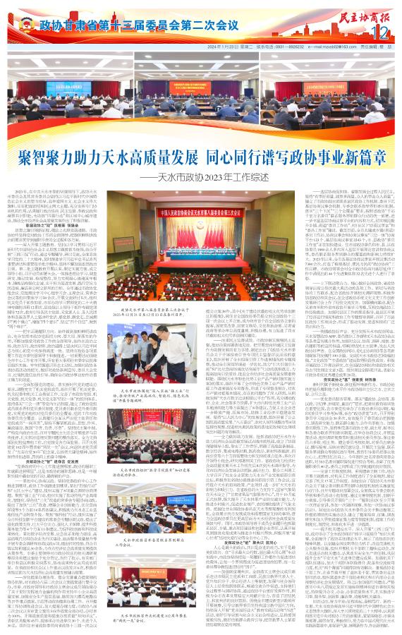 聚智聚力助力天水高质量发展 同心同行谱写政协事业新篇章