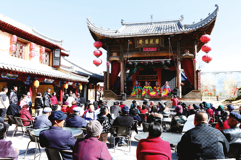 2月16日,正月初七,秦州区平南镇苏湾民俗庄园文艺戏台前座无虚席,丰富多彩的非遗民俗文化演出吸引了众多群众观看。