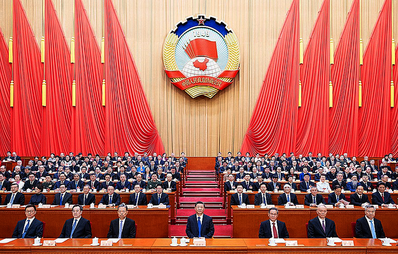 3月10日,中国人民政治协商会议第十四届全国委员会第二次会议在北京人民大会堂举行闭幕会。全国政协主席王沪宁主持闭幕会并讲话。 新华社记者鞠鹏摄