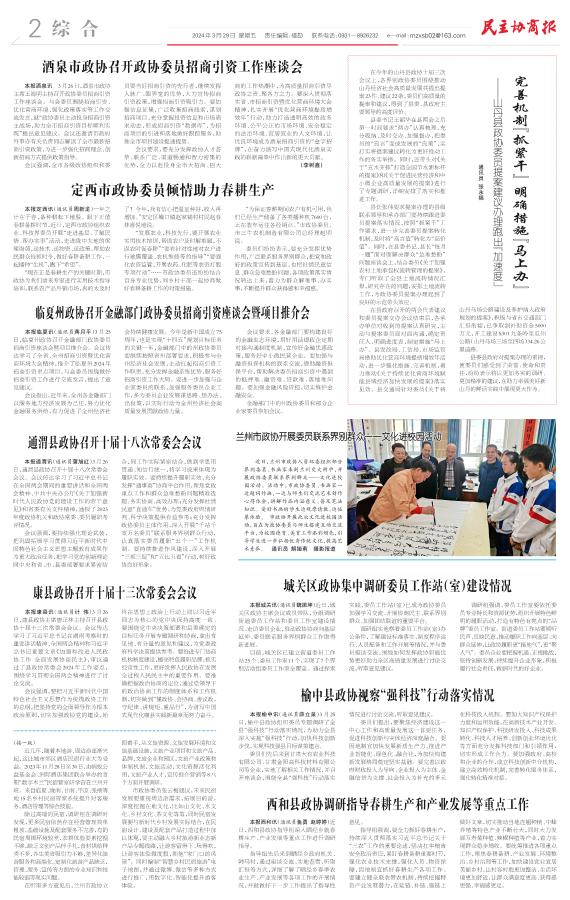 酒泉市政协召开政协委员招商引资工作座谈会