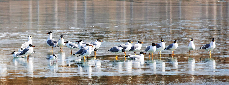 春季,嘉峪关市东湖飞来成群国家一级保护鸟类遗鸥,它们在湖中央觅食嬉戏,自由飞翔,引来许多市民观赏。