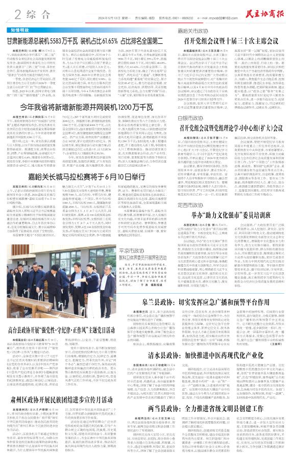甘肃新能源总装机5583万千瓦 装机占比61.65% 占比排名全国第二