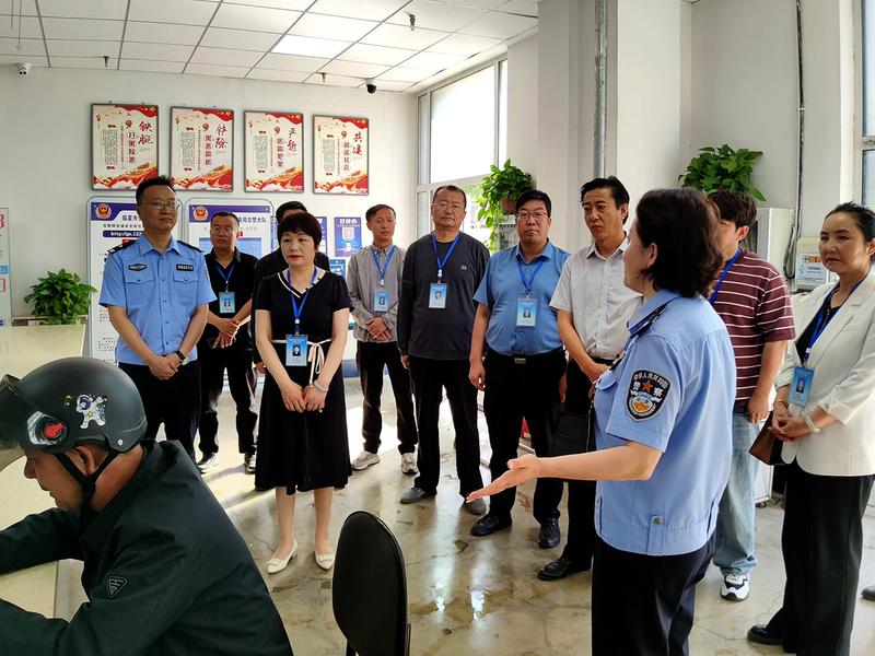 5月22日,临夏市政协组织委员对市公安局交警大队民主评议后整改工作开展“回头看”。图为评议组一行在市交警大队车驾管服务大厅、智能指挥中心了解工作开展情况。 通讯员吴春红摄影报道