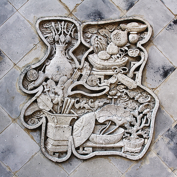 砖雕是古建筑雕刻中很重要的一种艺术形式,一般用来装饰宅第、园林、门楼、门罩及官邸或祠庙的八字墙。在江南地区,只要略具规模的住宅,大多沿着纵轴线布置花厅、轿厅及住房,形成一进又一进的庭院,每一院落都设有库门以分内外,而在门框上用水磨青砖砌成线脚向外突出并复以瓦檐,形成单独的门楼,这是宅院建筑不可缺少的构件。为了气派美观,门楼上须配有适宜的横额题字,有些还请名流雅士赐题。两旁还点缀人物故事,以及花鸟鱼虫、吉祥如意图饰花纹,加以精雕细刻,作为装饰。民谣里“花墙头,百子格”指的就是砖雕门楼。