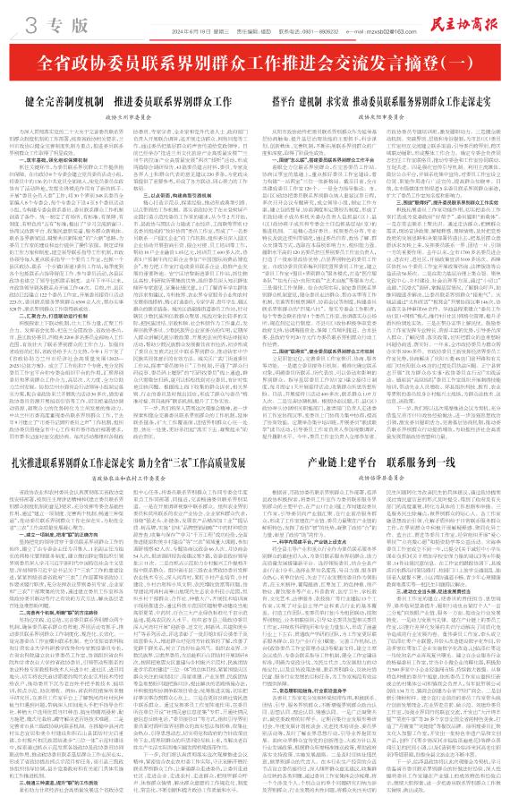 搭平台 建机制 求实效 推动委员联系服务界别群众工作走深走实