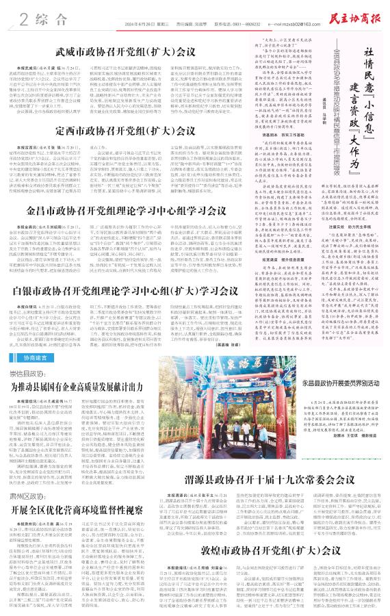 武威市政协召开党组(扩大)会议