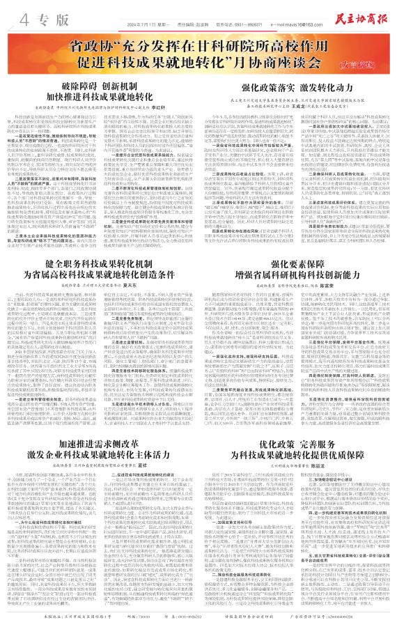 健全职务科技成果转化机制 为省属高校科技成果就地转化创造条件