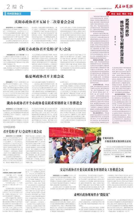 陇南市政协召开全市政协委员联系界别群众工作推进会