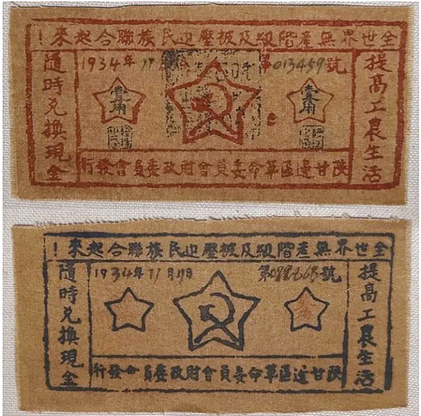 为打破敌人封锁,重新繁荣集市,民主政府成立了边区银行,承担发行货币、办理兑换等职责,同时将印制货币的任务交给了具有雕刻、绘画技艺的政府人员高名山和邵凤麟、邵凤来兄弟。3人在没有印刷设备和适用纸张的艰苦条件下,经反复研究、试验,采用木刻制版、在麻布上套色彩印,用桐油浸润、烘干的方法,印出质地柔韧、抗折耐磨,面值一角、二角、五角3种油布币,是陕甘边区首次发行的红色货币。