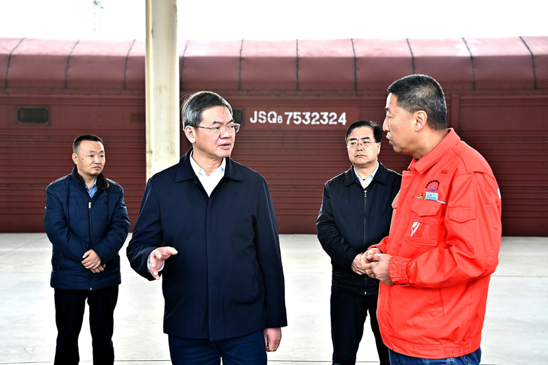 在甘肃(兰州)国际陆港,庄国泰仔细了解平台建设、班列运行、物流通道、配套服务等情况。他表示,要抓住“一带一路”最大机遇,进一步明确陆港的功能定位、发展目标和路径措施,探索创新运营模式,拓展运输通道,提升陆港的服务能级和带动作用。要以改革精神破解发展瓶颈问题,激发创新活力,释放综合效能,更好发挥国家对外开放重要平台和国际物流中转枢纽、贸易物资集散中心作用,助推我省深度融入“一带一路”和西部陆海新通道建设。
