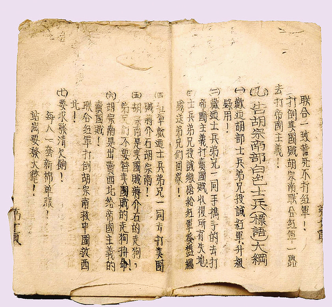 红四方面军革命宣传手册是古浪县委党史办抢救性挖掘收集的红色文化档案,于1983年7月从土门镇当地村民手中收集而来,是一份能真实、可靠佐证红军西路军血战古浪的脉络、经过及悲壮征程的革命历史文物。
