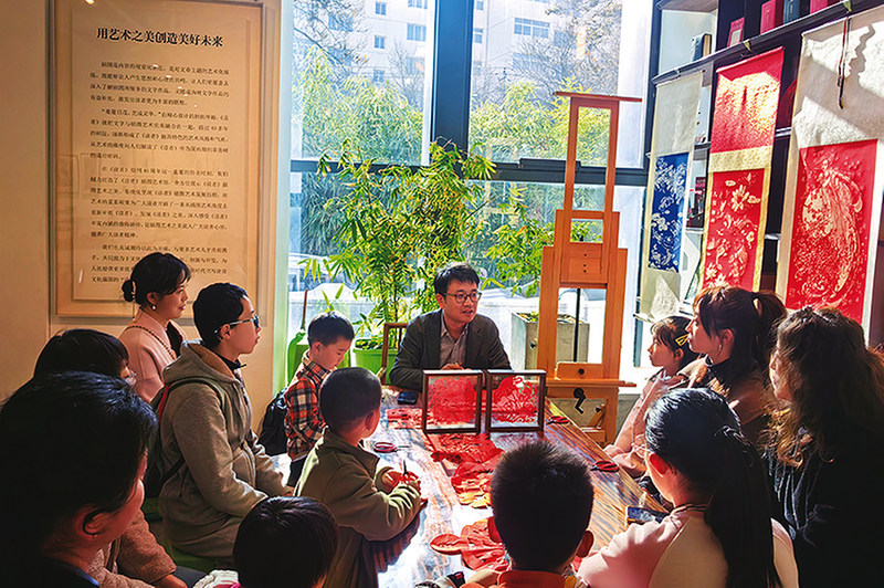 近日,临洮县政协委员、临洮剪纸传承人裴天鹏开展“非遗润童心、文脉共传承”非遗体验服务界别群众活动,使群众在进行折叠、裁剪中体验了剪纸艺术的独特魅力。 通讯员甘文景 摄影报道