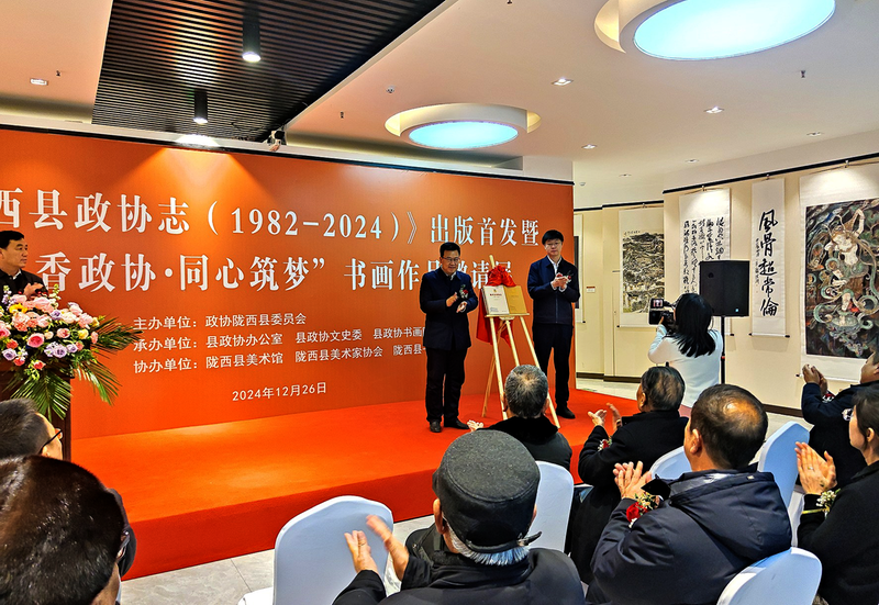 12月26日,陇西县政协举办《陇西县政协志(1982—2024)》出版首发暨“书香政协·同心筑梦”书画邀请展开展仪式。县委、县人大、县政府领导,历届县政协主席、副主席,县直部门和单位负责人,各县区参展作者,县政协机关干部职工及县政协书画院成员,书画作品特邀作者共160余人参加。 通讯员 李吉利 摄影报道
