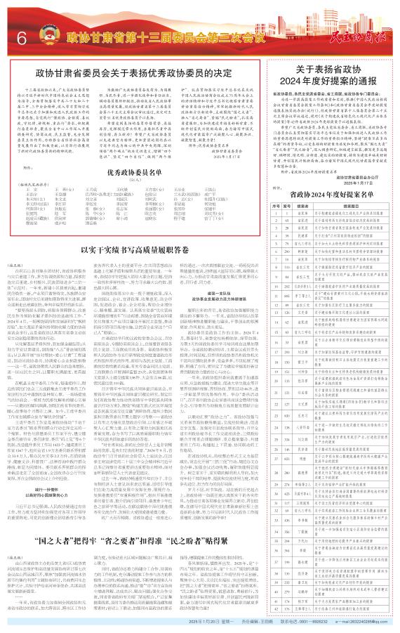 政协甘肃省委员会关于表扬优秀政协委员的决定