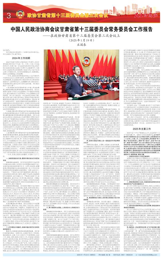 中国人民政治协商会议甘肃省第十三届委员会常务委员会工作报告