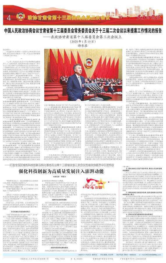 中国人民政治协商会议甘肃省第十三届委员会常务委员会关于十三届二次会议以来提案工作情况的报告