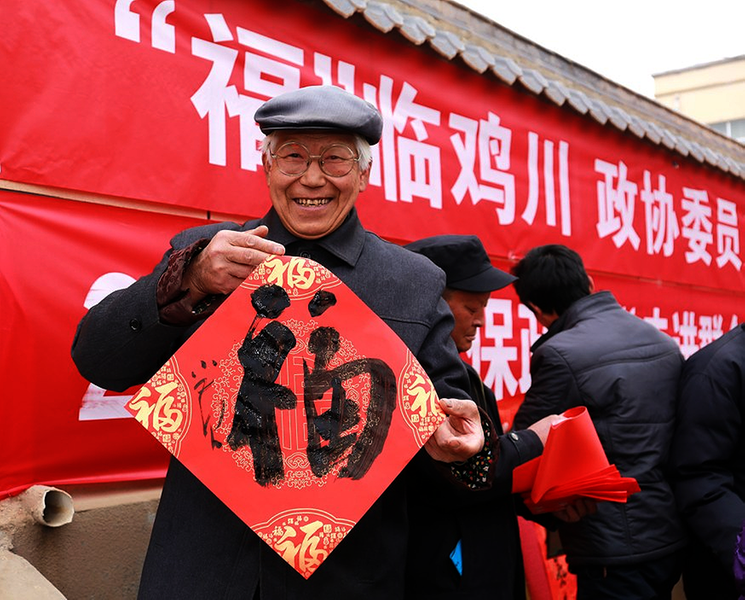 1月23日,通渭县政协组织部分市县政协委员、相关领域专家和书画家,在鸡川镇开展送政策、送法律、送文体、送科技、送卫生、送温暖“六送服务”活动,为群众送上一场丰富多彩的文化盛宴,写满为群众“量身定做”的新春祝福,吸引群众争相领取,每个人脸上洋溢着幸福的笑容。 通讯员李 昆 摄影报道