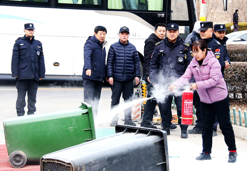 为深入学习贯彻习近平总书记关于安全生产的重要论述,着力防范化解消防安全隐患,切实提升应急处置能力,2月20日,省政协机关邀请甘肃盛世宏辉建筑安装工程有限公司为机关安保、车辆、消控、食堂、物业等岗位的工勤人员,开展消防安全知识培训暨应急消防演练。图为机关工勤人员正在使用干粉灭火器进行实操演练。 实习记者吴雪凤摄影报道
