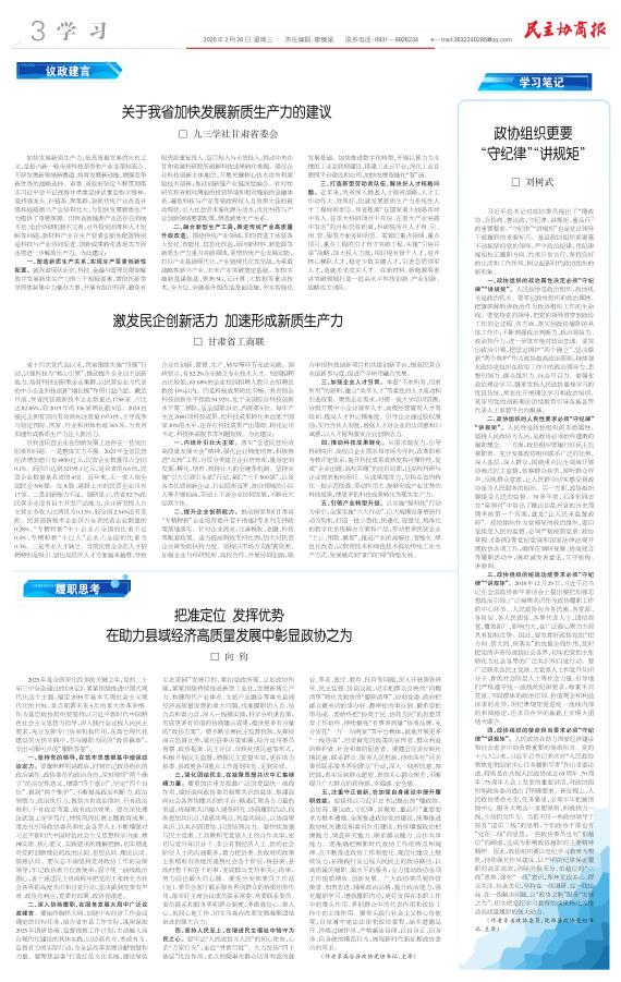 关于我省加快发展新质生产力的建议