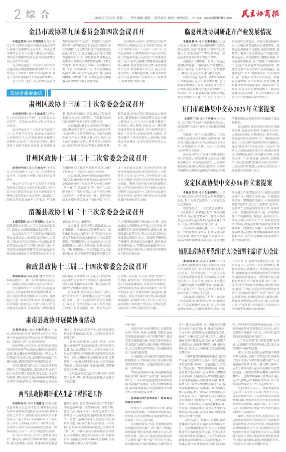 金昌市政协第九届委员会第四次会议召开