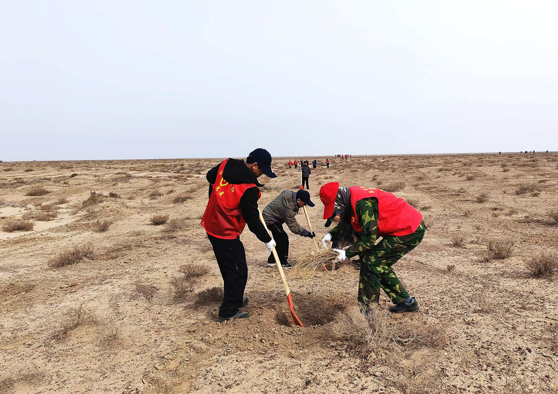 又是一年植树季,不负春光添新绿。近日,武威市政协组织机关干部在民勤县昌宁镇四方墩青梭公益生态林基地开展春季义务植树活动,栽植浇灌梭梭苗,以实际行动践行习近平生态文明思想,为建设西部生态安全屏障贡献力量。
