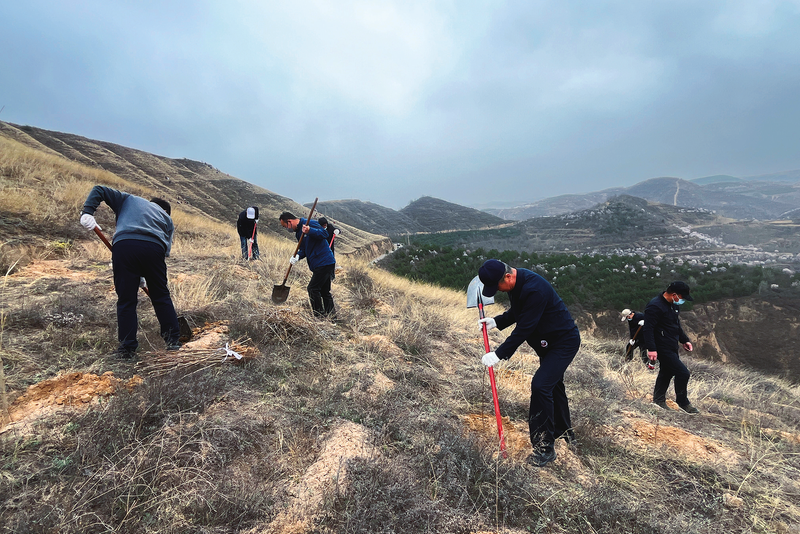 4月11日,华池县政协组织干部职工开展义务植树,以实际行动为生态建设添绿助力。通讯员 杨春燕 杨谨羽摄影报道