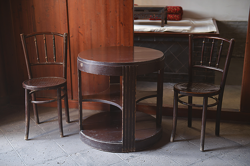 这是周恩来1939年前往苏联途经兰州在八办居住时苏联外交代表处赠送给他的三件一套的苏式桌椅,为国家一级革命文物。