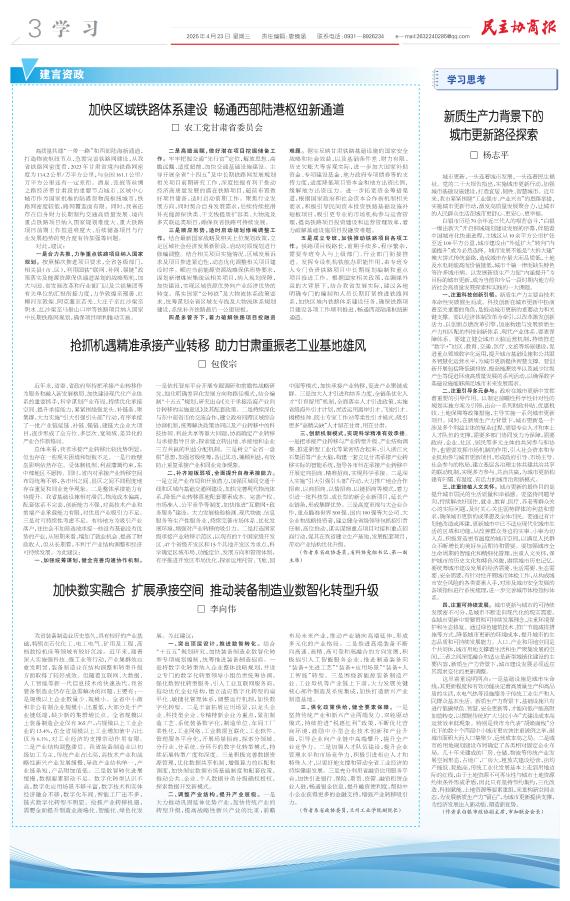 抢抓机遇精准承接产业转移 助力甘肃重振老工业基地雄风