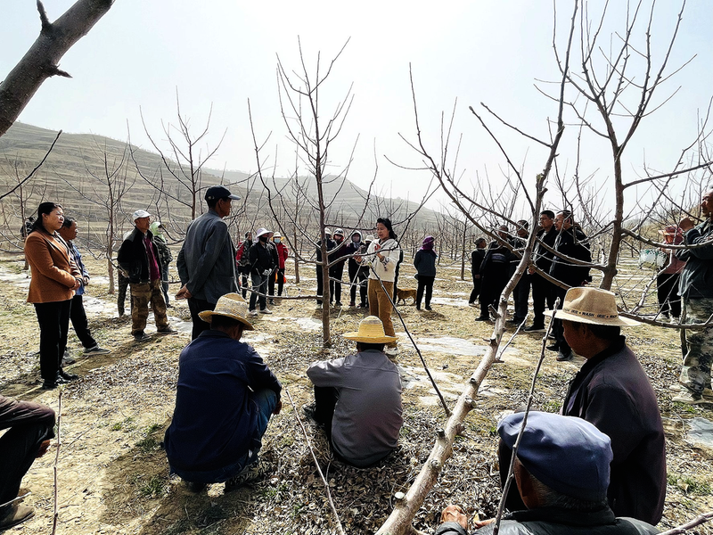 近日,通渭县政协组织农业界、科技界委员在鸡川镇苟岔村开展联系界别群众的活动。委员们在田间地头通过“面对面”指导、“手把手”教学的方式开展果园管理技术培训,以新理念、新技术推动果品丰产和农民增收。郭全胜赵明霞摄影报道