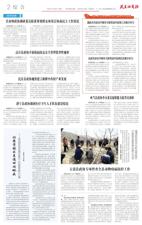 甘南州政协调研委员联系界别群众和基层协商民主工作情况