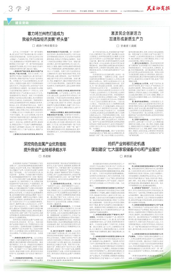 着力将兰州市打造成为 我省外向型经济发展“桥头堡”