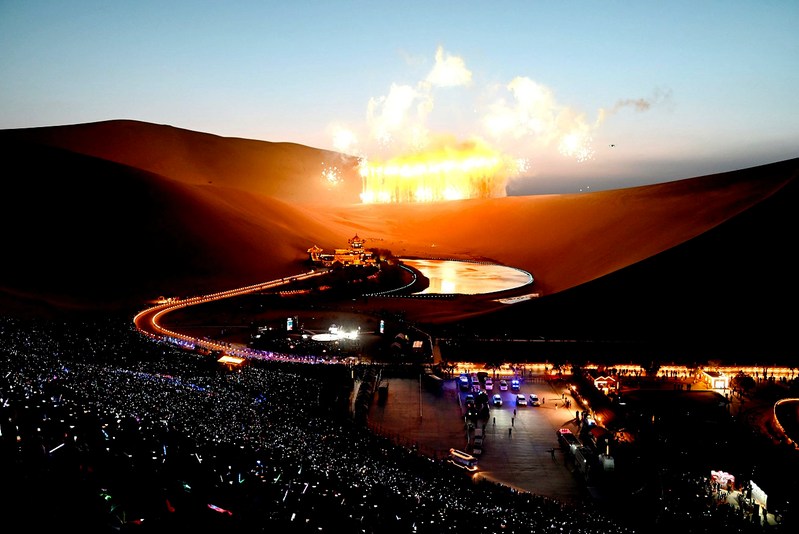 5月4日,敦煌市鸣沙山月牙泉景区“五一”专场万人星空演唱会 张晓亮摄