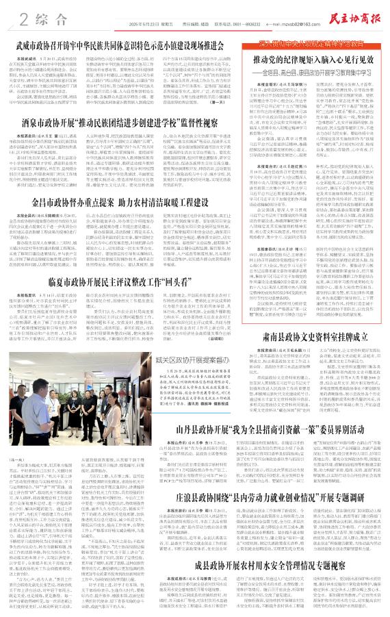 酒泉市政协开展“推动民族团结进步创建进学校”监督性视察