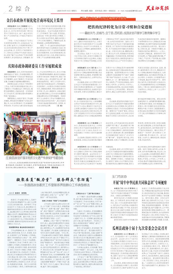 金昌市政协开展优化营商环境民主监督