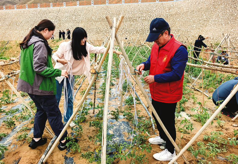 6月19日,金昌市政协机关党支部携手永安村党支部,在永昌县南坝乡西校村开展“党建引领聚合力·劳动实践润初心”主题党日活动。机关党员干部与农村党员分工协作,为前期种植的西红柿、辣椒等蔬菜苗搭架、除草、施肥,在并肩劳作中密切了联系,用实际行动践行为人民服务的根本宗旨,为助力南坝乡花果山生态旅游示范基地建设贡献了绵薄之力。