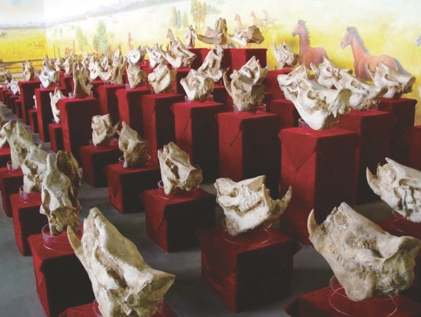 行走在神奇而梦幻的临夏大地上,看着这里起伏的山峦,想到在这里出土的数量巨大、种类庞杂的古动物化石,不禁神游四海八荒,仿佛已置身于茂密的远古丛林和奔走的各类动物种群之中。20世纪80年代,有位专家探察了临夏地区地质构造后,有理有据地说:“临夏地区的红砂地质中,一定会有石破天惊的发现!”果不其然,考古学家们在临夏发现了大量被人们称作“龙骨”的化石。为了保护和政化石,当地政府一面取缔民间私挖乱卖活动,一面开始从民间征集化石,并从20世纪90年代开始进行大面积的收购,第一次征集到了1055件化石标本,后来又陆续征集了许多。截至目前,总共征集到各类古动物化石标本3万多件。尤其是第一次征集时,正处于化石走私最为严重的时期,作为贫困县的和政出资53万元征集了千余件化石,一时间连机关干部的工资都无力发放。现在看来,正是那一次政府出资征集的行动,使得和政古动物化石的命运真正出现了转折。在国家、甘肃省和中科院的大力支持下,当地相继建成了和政古动物化石博物馆和桦林古生物化石原址埋藏馆,并成功申报了甘肃和政古生物化石国家地质公园,使弥足珍贵的古动物化石有了一个很好的归宿。