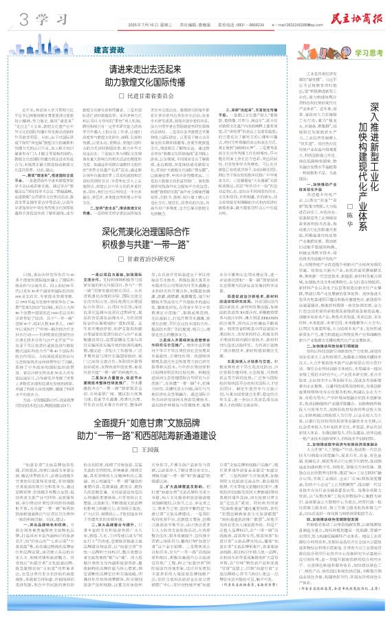 全面提升“如意甘肃”文旅品牌 助力“一带一路”和西部陆海新通道建设