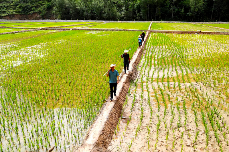 炎炎夏日,在陇南市武都区五库镇魏坝村,驻村帮扶工作队正与村民一起管护着百亩水稻生长。据悉,今年以来,魏坝村进行“旱地改水稻田”160多亩,以“党支部+合作社+村民”的模式壮大村集体经济,不断发展“一村一品”等特色产业,全面助力农民持续增收致富。