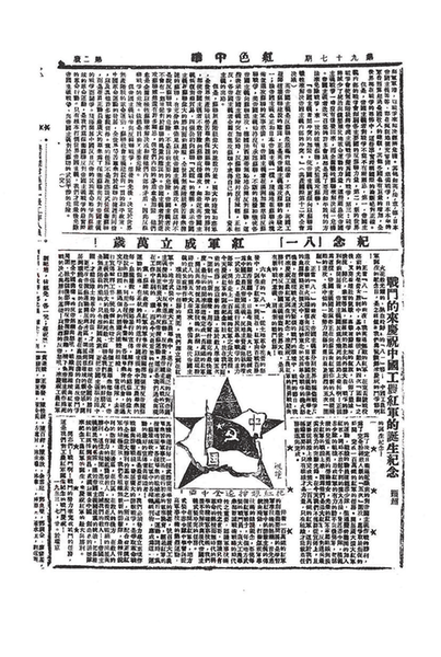 1933年6月30日,中革军委发出《关于决定“八一”为中国工农红军成立纪念日的命令》,指出:“本委会为纪念南昌暴动与红军成立,特决定自1933年起每年8月1日为中国工农红军成立纪念日。”为宣传和纪念这个光辉的日子,同年7月29日,《红色中华》第97期隆重推出“八一特刊”,刊登了毛泽东、张闻天、邓颖超等撰写的7篇文章,邓颖超的《战斗的来庆祝中国工农红军的诞生纪念》(以下简称《战斗》)发表在第二版上,她时任苏区中央局秘书长。