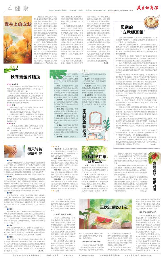 立秋时节注意“四养三防”