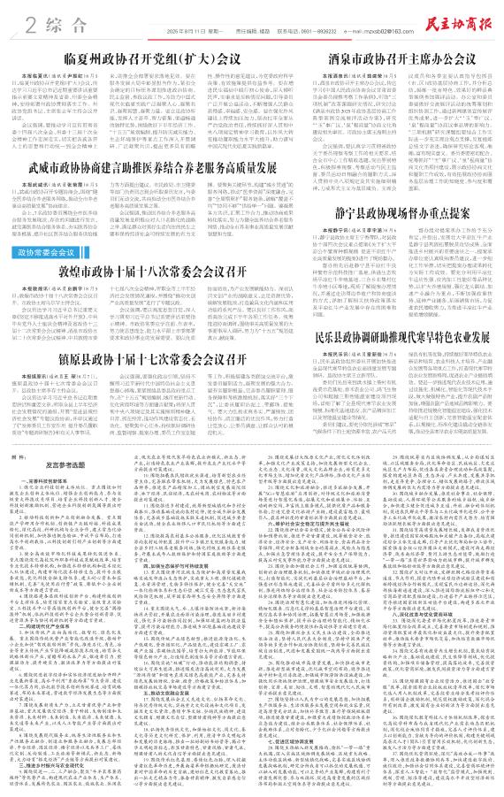 武威市政协协商建言助推医养结合养老服务高质量发展