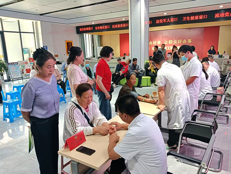 8月28日,瓜州县政协医药卫生界委员工作室授牌仪式在县中医院举行。授牌结束后,委员工作室随即开展“义诊进社区”活动,在疏勒社区设置健康咨询台,为群众提供血压血糖检测和慢性病管理、中医养生等免费咨询服务。 通讯员朱明星 摄影报道