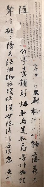 王尔全先生,静宁人,字安卿,诗书世家,陇右名人。吾友世恩李丹先生,偶得其亲书自作诗《重到柳湖》立轴,惜已残缺,影响欣赏认读,嘱余将原诗抄录补缺。恶札实不敢染前贤翰迹,诚惶诚恐,此记。