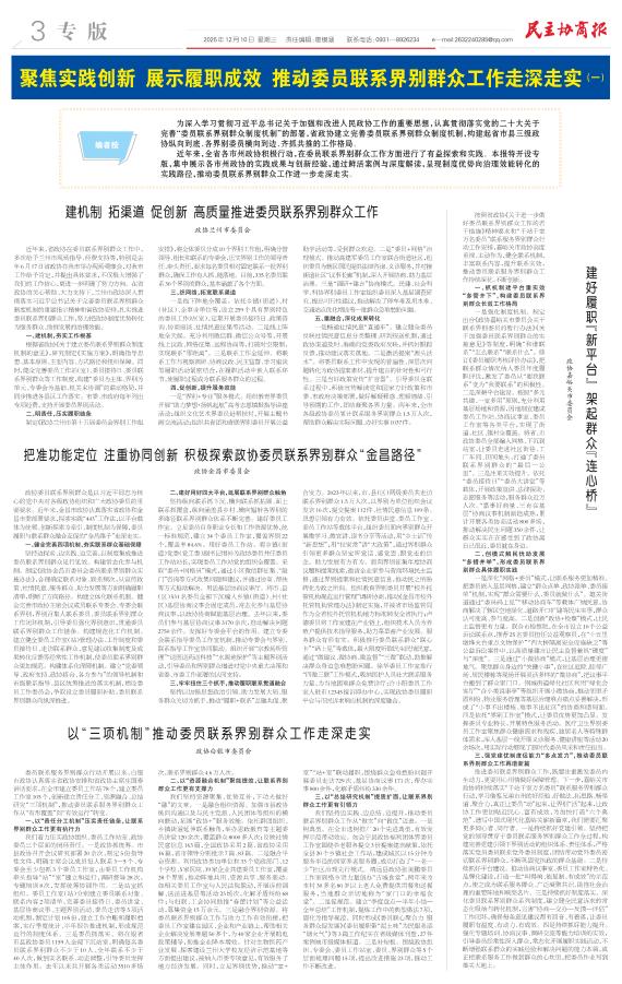 建机制 拓渠道 促创新 高质量推进委员联系界别群众工作