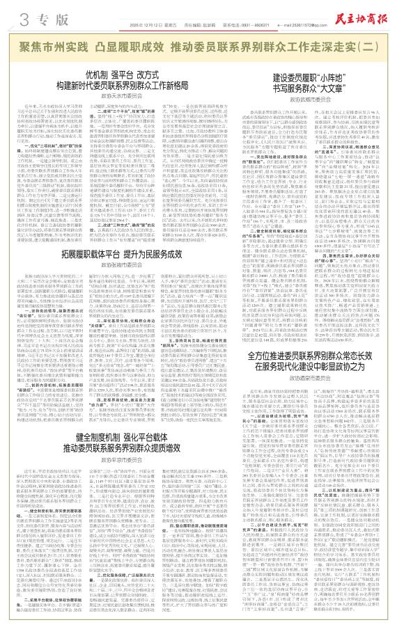 健全制度机制强化平台载体 推动委员联系服务界别群众提质增效