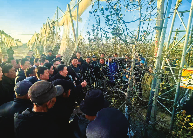 连日来,灵台县政协组织农业界政协委员及果业技术专家深入田间地头,为果农们“传经送宝”,逐一解答防寒防冻、枝组更新、病虫害防控等问题。在树干涂白剂配制、有机肥施用剂配比等实操环节,委员们亲自示范,确保每一位参与培训的果农都能熟练掌握栽培技术。