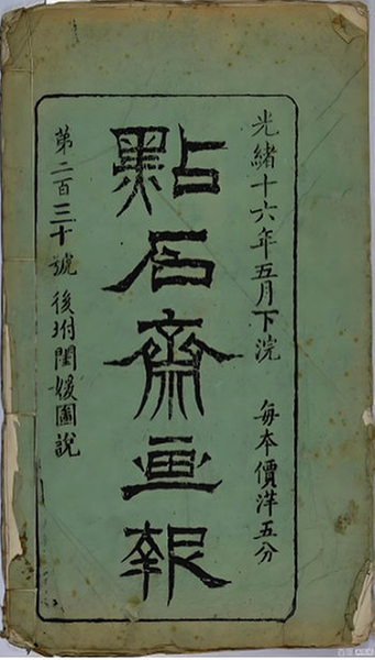 《点石斋画报》是由上海《申报》的老板英商美查创办的,发刊于1884年5月8日,根据近年研究成果可知,其终刊时间为1898年。