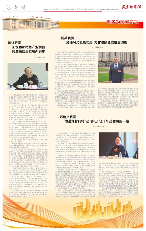 阮英委员: 激活风光氢能优势为甘肃绿色发展添动能